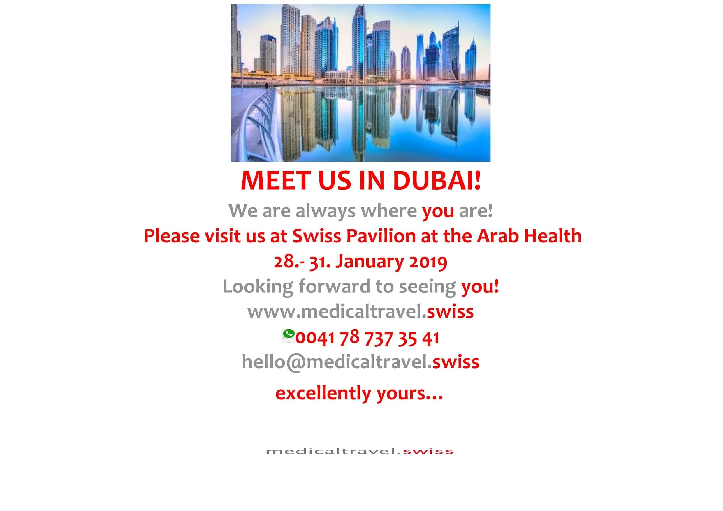 We are looking forward to welcoming you in our stand. Excellently yours- medicaltravel.swiss